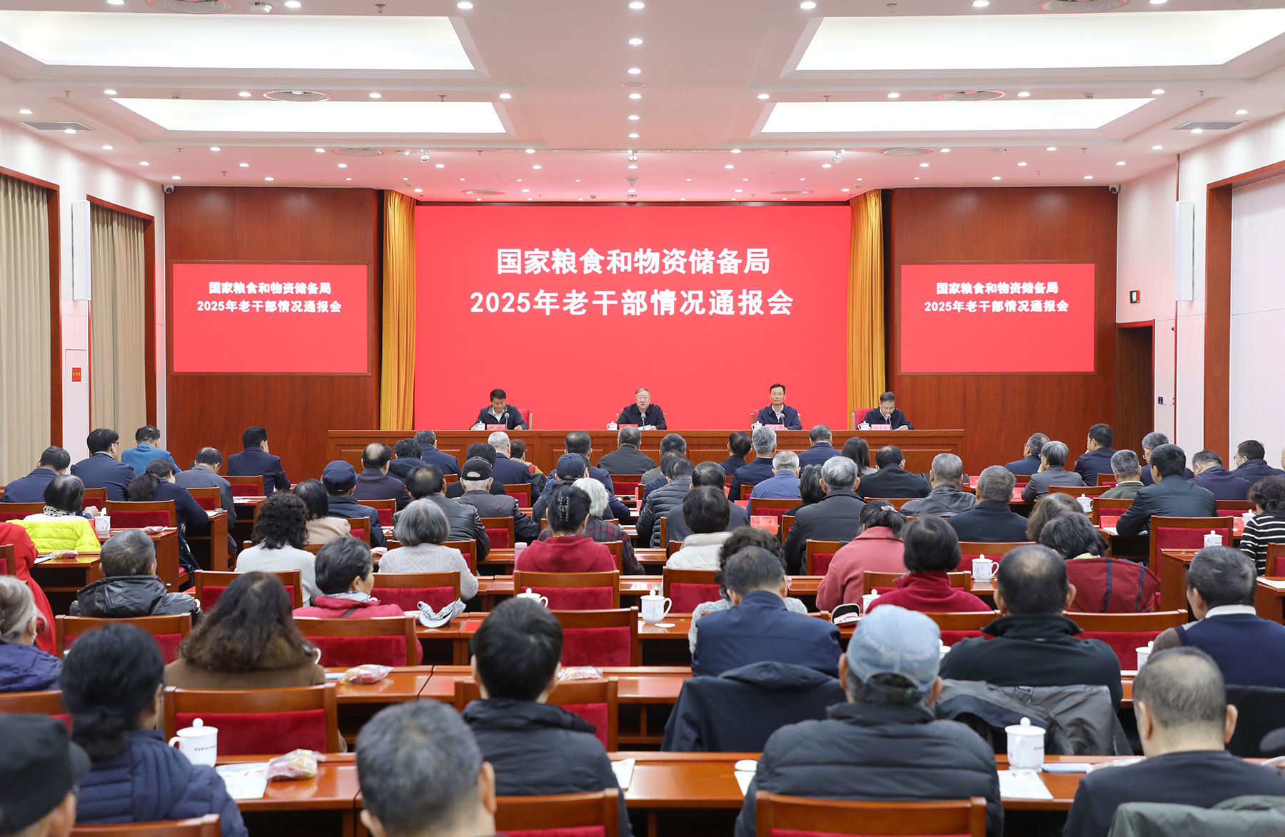 | 为深入学习宣传贯彻党的二十届四中全会精神,认真落实老干部政治待遇,10月29日,国家粮食和物资储备局召开2025年老干部情况通报会。国家发展改革委党组成员,国家粮食和物资储备局党组书记、局长刘焕鑫出席会议并讲话。国家粮食和物资储备局党组成员、副局长秦玉云、王宏出席,党组成员、副局长陈军生主持。聂振邦,曾丽瑛、赵中权、卢景波、韩卫江、贾骞、刘小南等老领导和老干部代表90余人参加通报会。