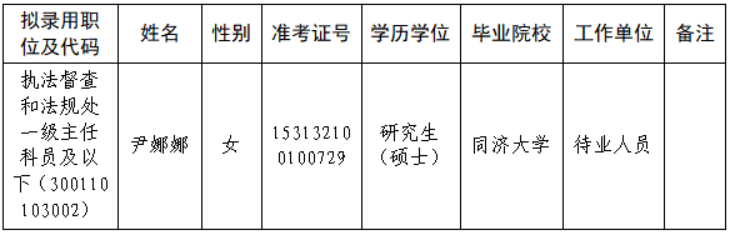 根据中央机关及其直属机构2025年度考试录用公务员工作有关要求,经过笔试、面试、体检和考察等程序,确定尹娜娜(因怀孕延迟体检)为国家粮食和物资储备局山西局拟录用公务员,现予以公示。公示期间如有问题,请向国家粮食和物资储备局山西局人事处反映。