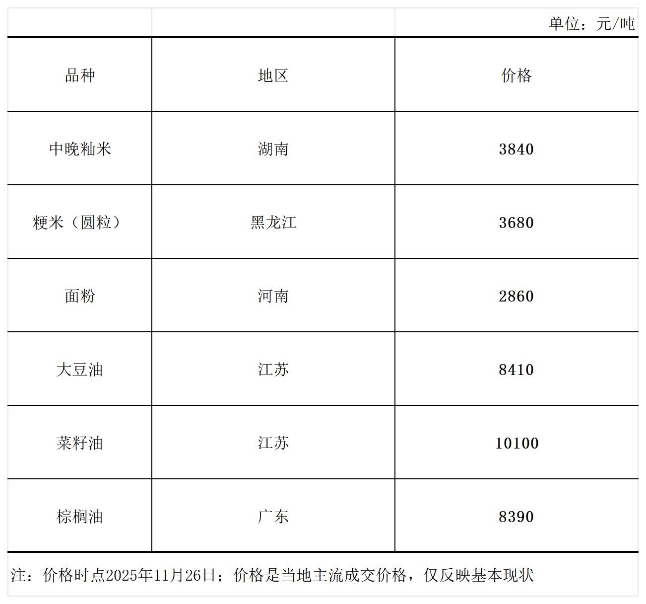 主要粮油商品市场价格周报(11月26日)