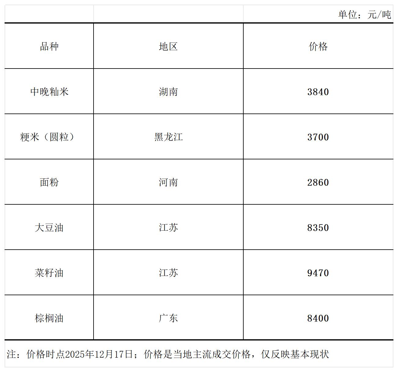 主要粮油商品市场价格周报(12月17日)