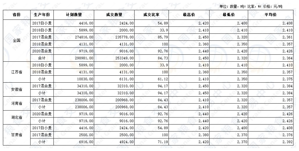 政策性粮食交易结果